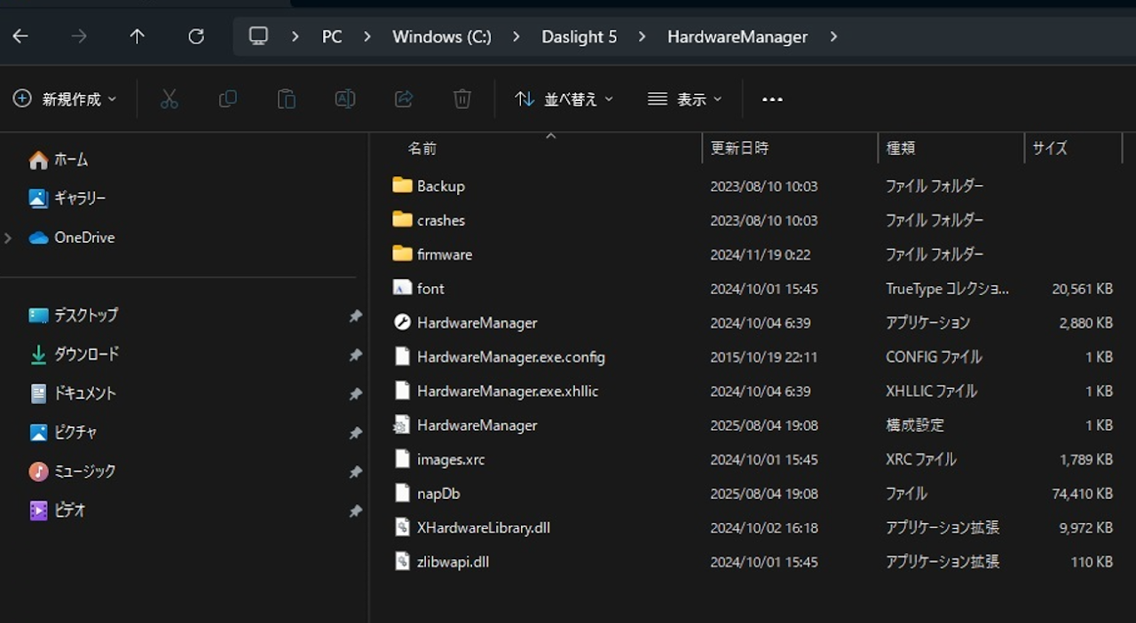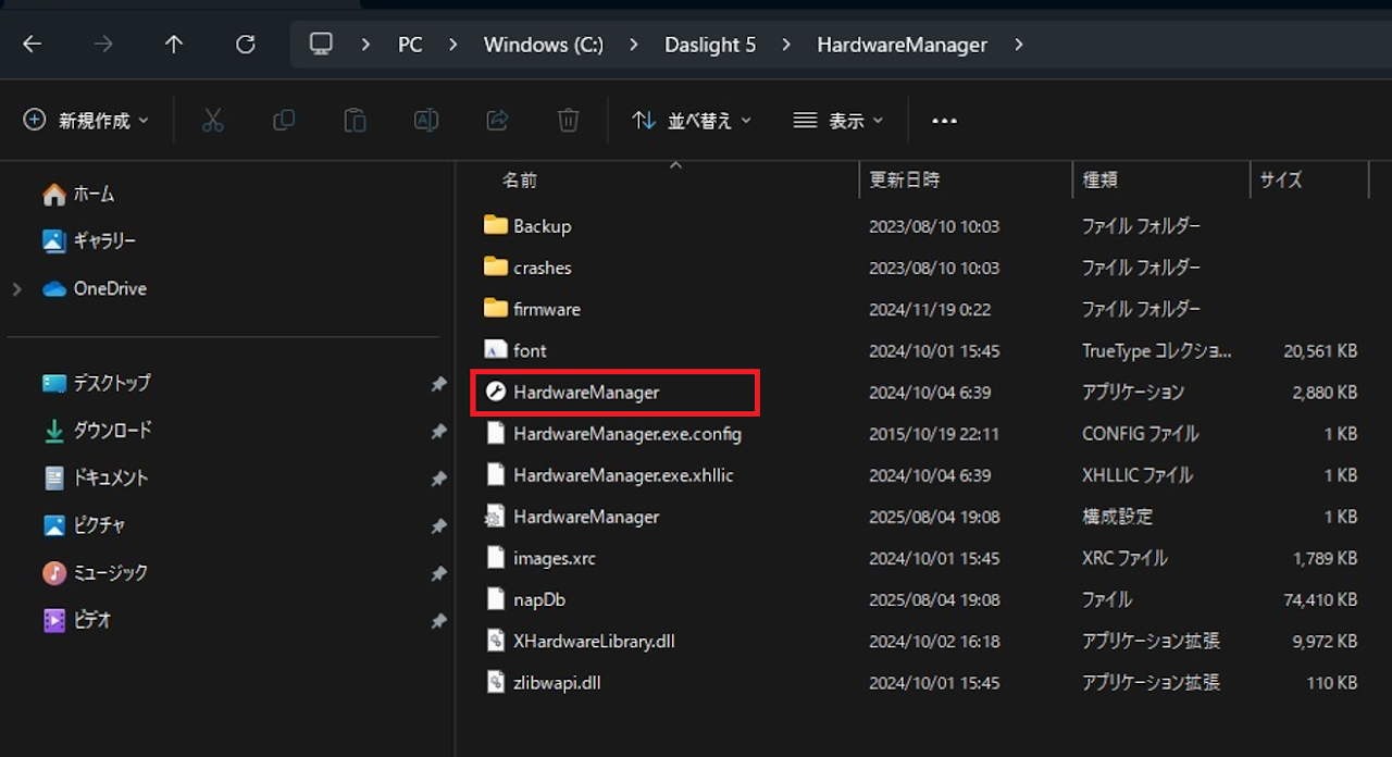 1.「Daslight」フォルダ内のHardware Manager フォルダを開く。