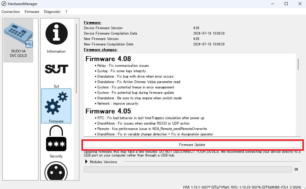 アップデートが終了したら、Hardware Managerを終了し、Daslightを起動してください。