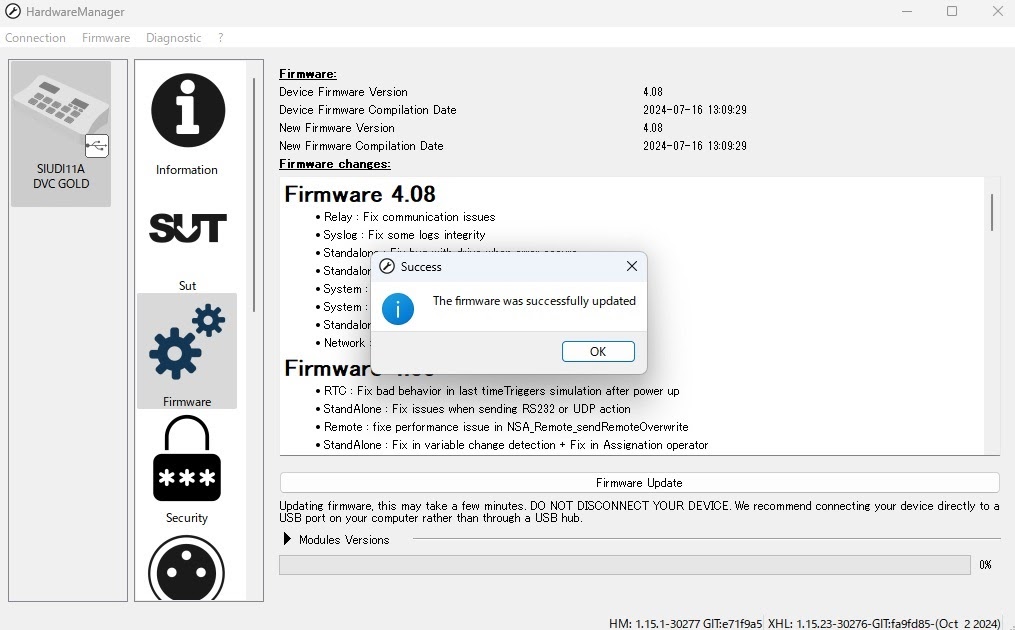7. Update 成功のダイアログウィンドウが開いたら終了です